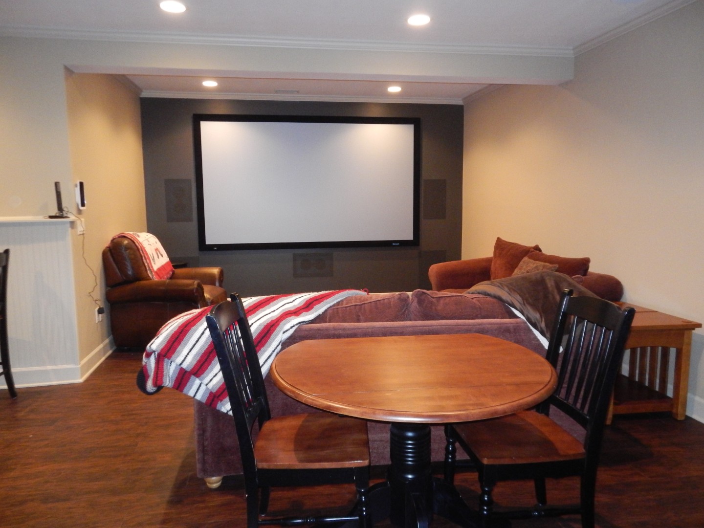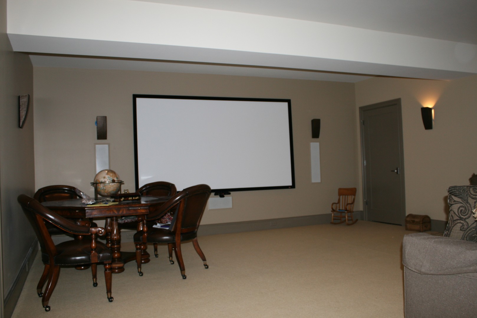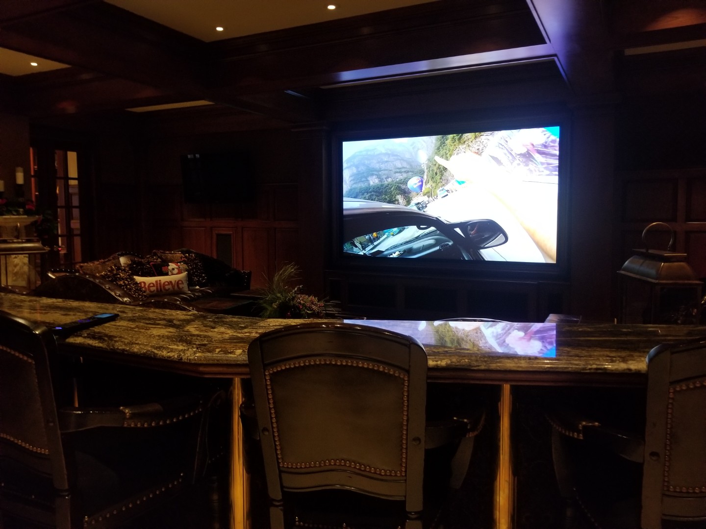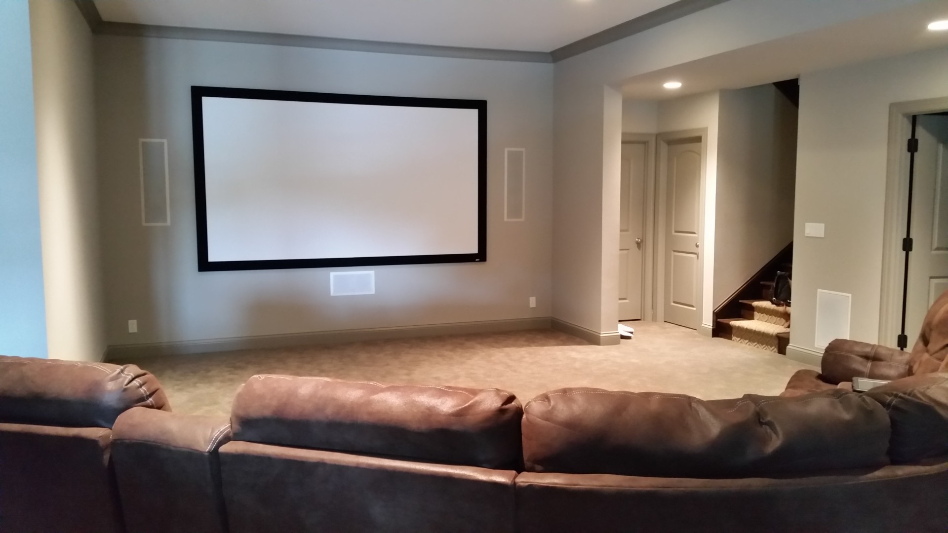 Our installations focus on both performance and appearance. Clean wiring, properly mounted displays or projection systems, discreet speaker integration, and intuitive control systems allow the technology to disappear into the room while remaining simple to operate. The result is a theater that feels refined rather than complicated.